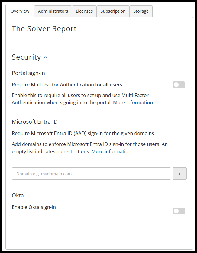 By adding this domain, you have now locked Solver to only users who can authenticate against the provided domain(s), with the exception of those who have been assigned to the Company Administrators group.